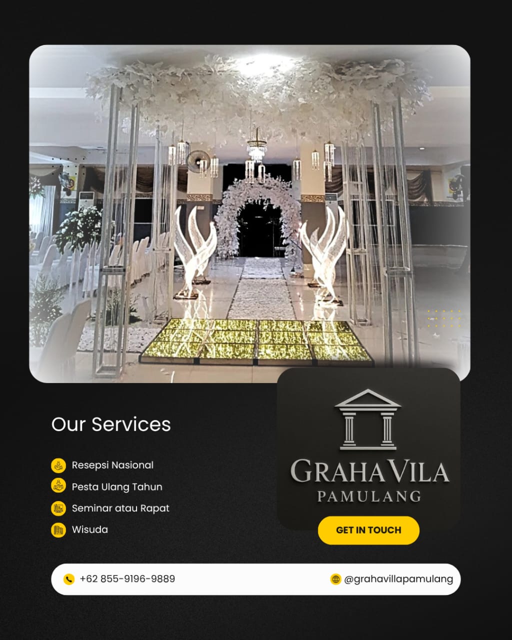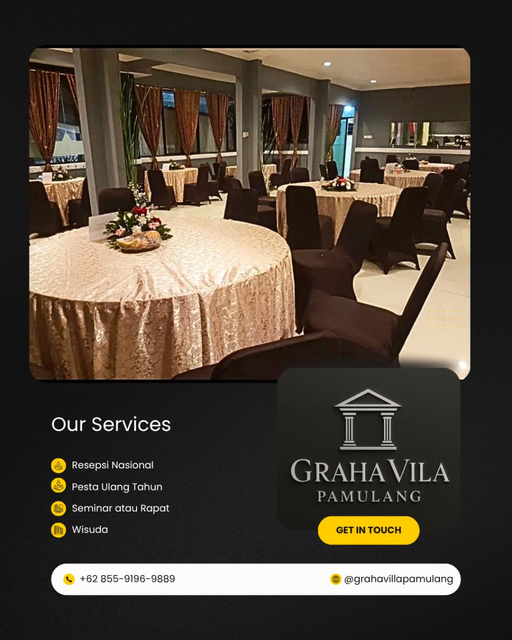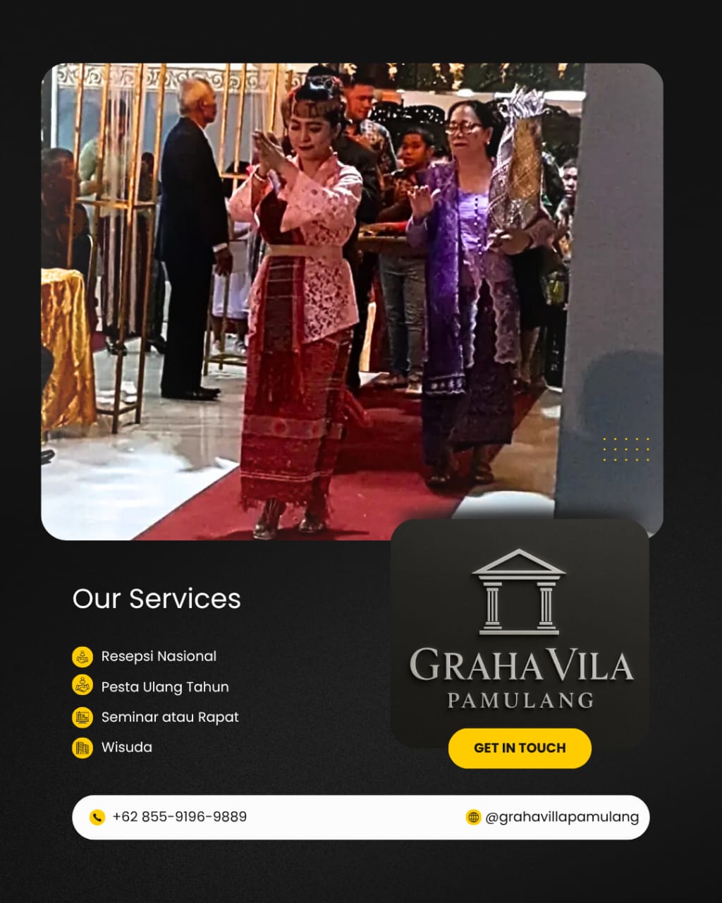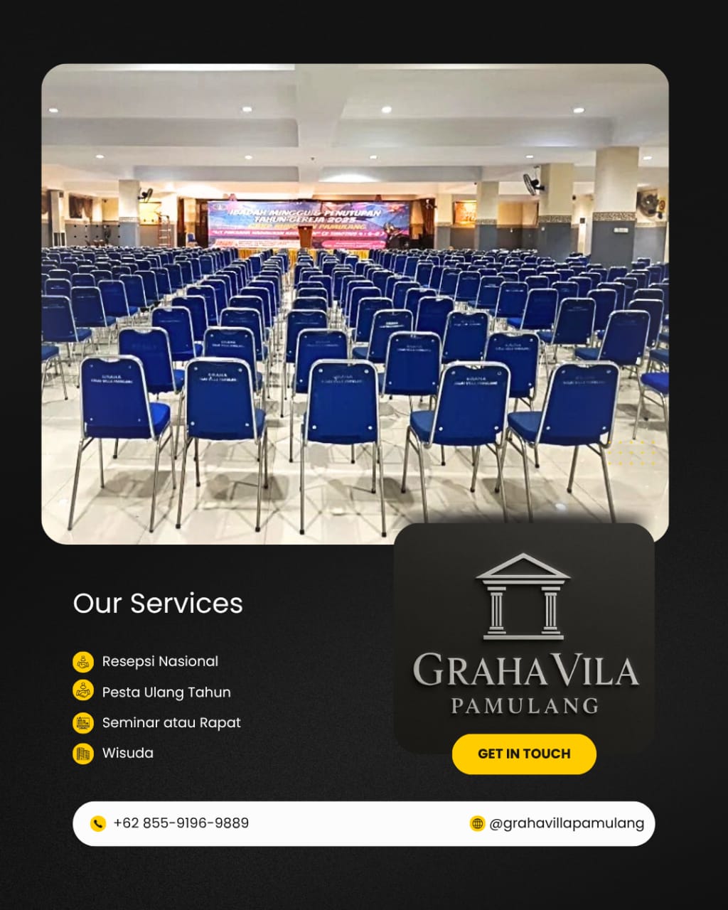 Sebuah venue yang luas dan elegan untuk acara nasional berskala formal, pertemuan resmi, dan perayaan komunitas.